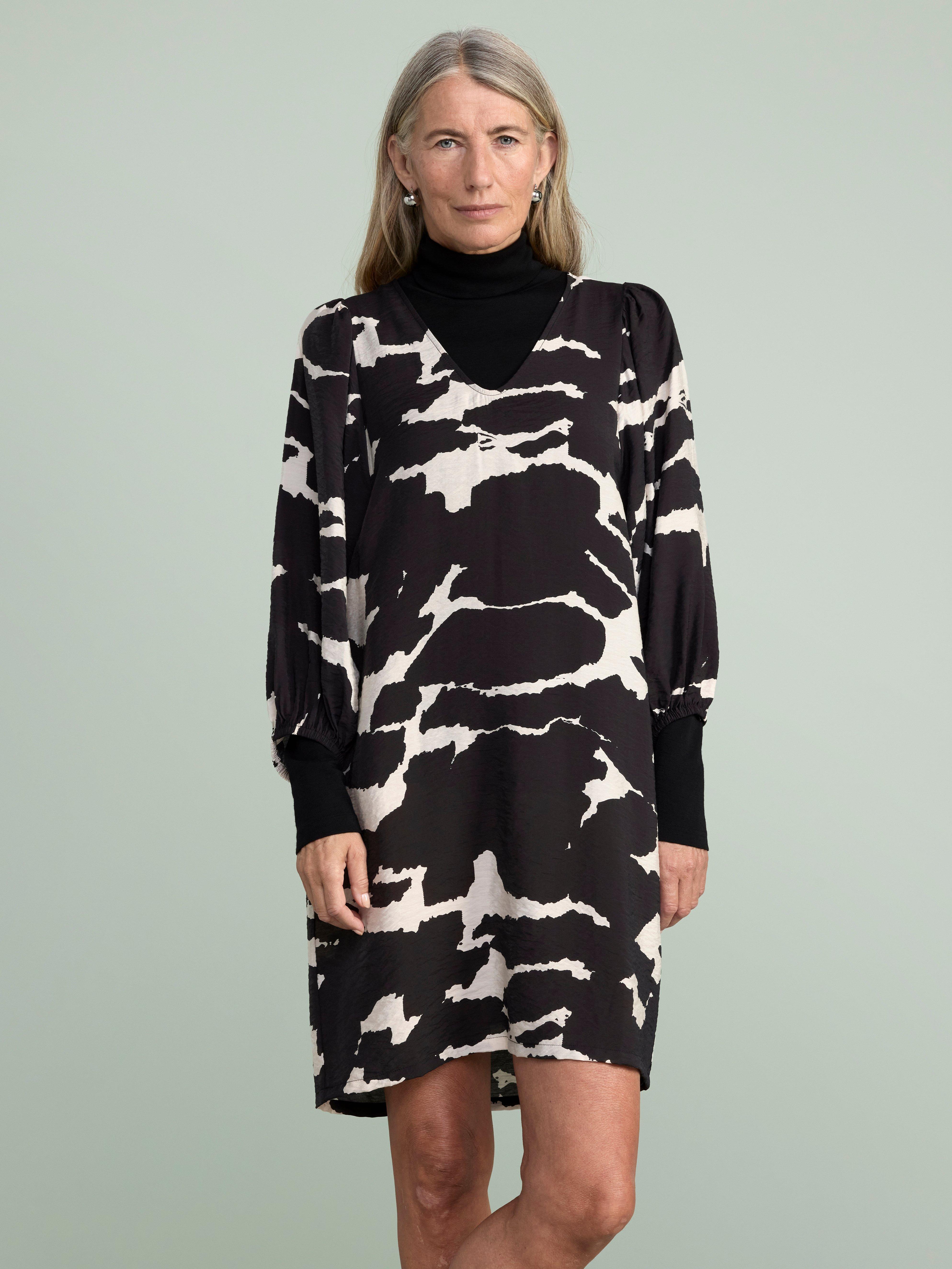 Hän ratkaisi ongelman ostamalla mittatilausmekon joka sopisi joka tilaisuuteen. No materiaali oli villaa, joka ei ehkä sovi joka säähän kun Suomessa kumminkin on (onneksi) 4 vuodenaikaa. Ja värinä oli musta joka tuntui vievän värit hänen elämästään.